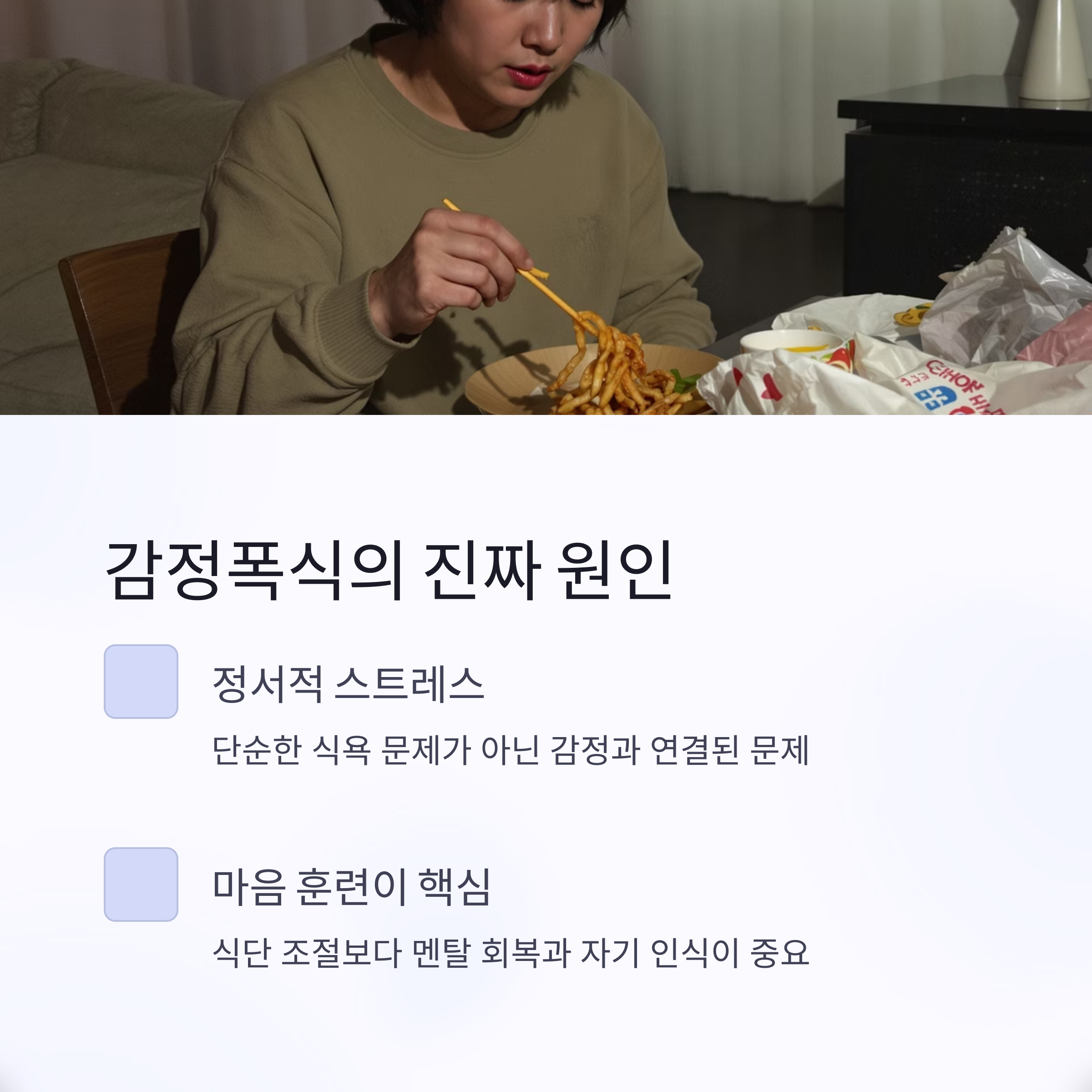 | 감정폭식 원인 | 스트레스와 외로움이 식욕을 자극함 |