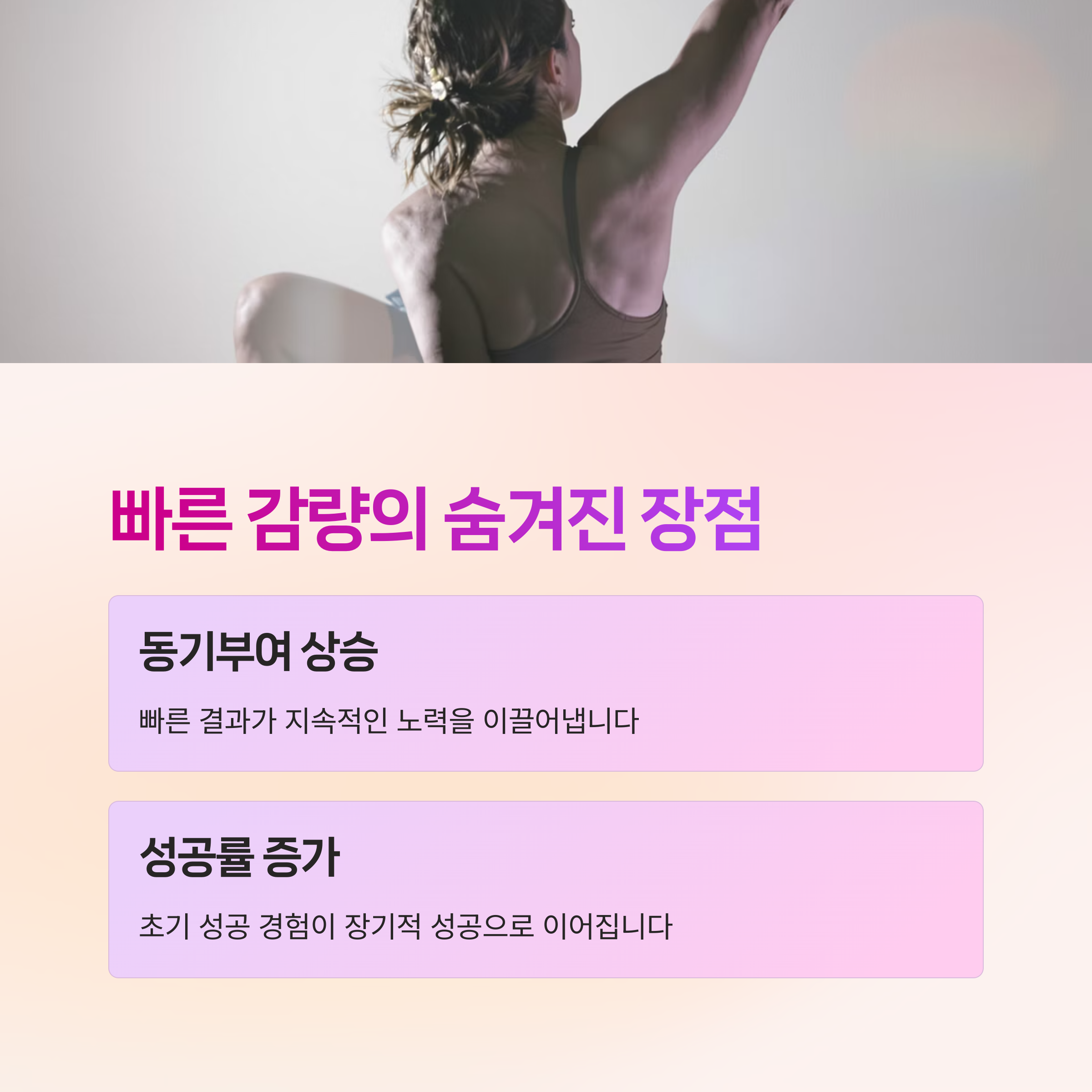 | 빠른 감량 | 초기 동기 부여에 효과적 | 적절한 계획 필요 |