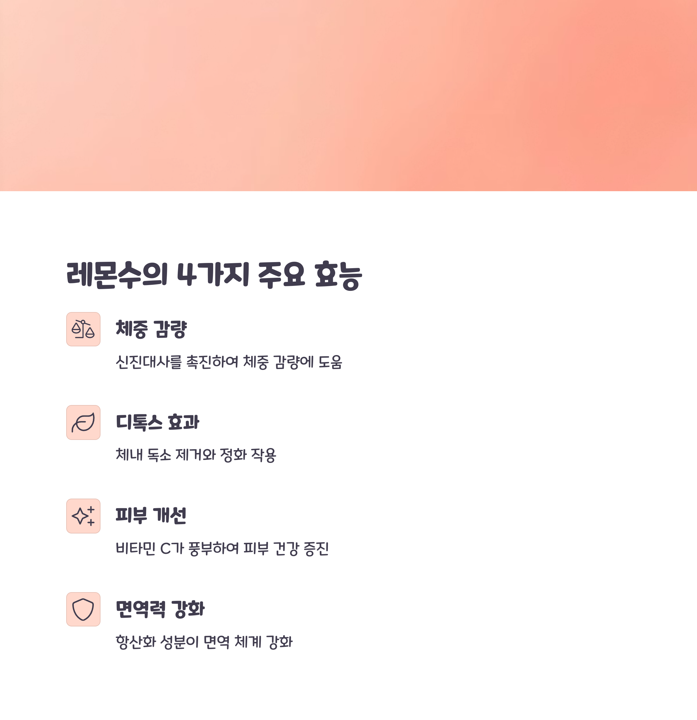 | 꾸준한 섭취로 체중 감량 효과 강화 | 이뇨 작용 촉진으로 노폐물 배출 | 비타민 C 공급으로 탄력 유지 |