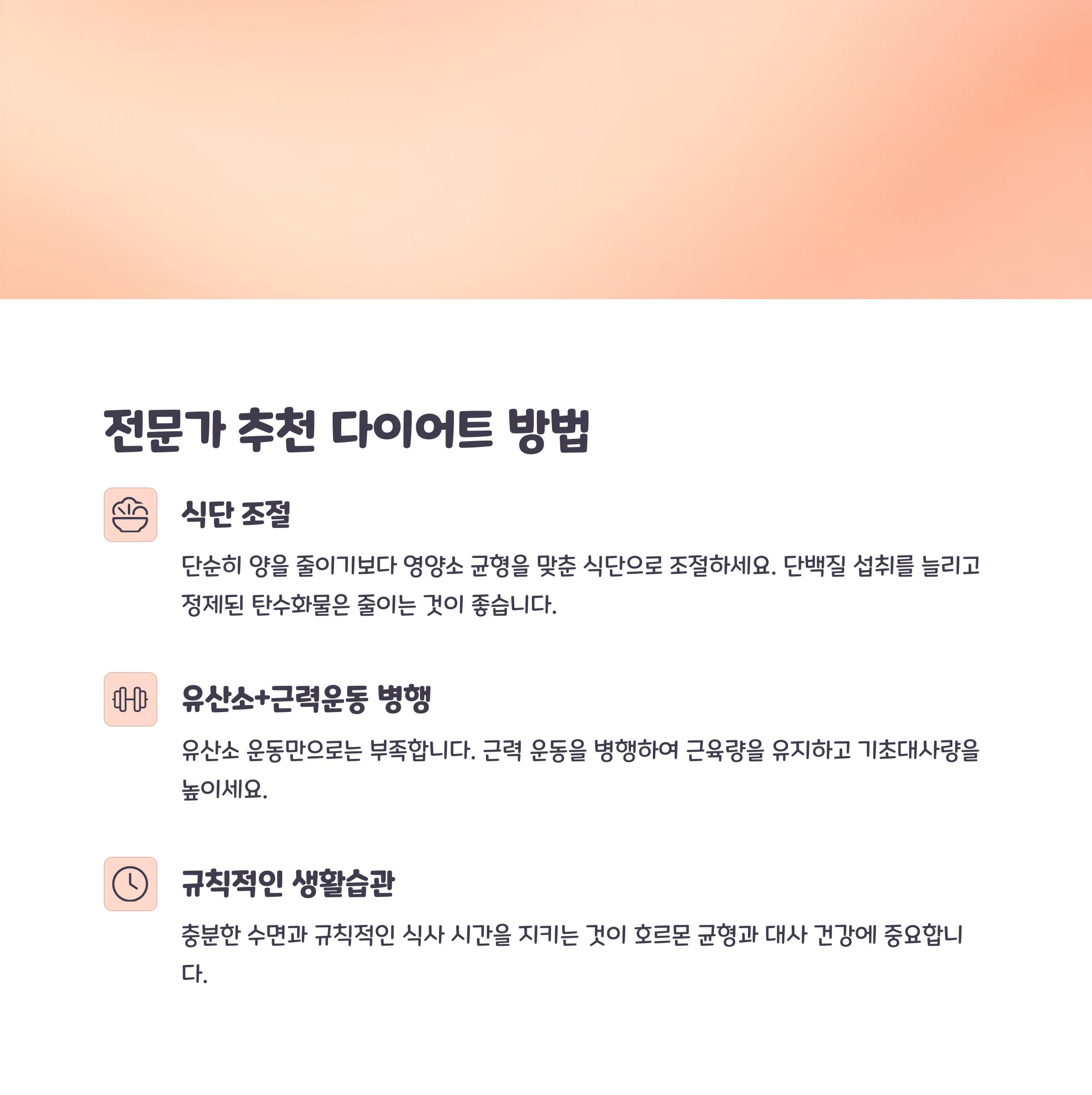 | 하루 에너지 소비량이 줄어들어 체중 증가 유발 | 고지방식과 활동 부족이 원인이 됨 | 장기적으로 꾸준히 관리하는 태도가 필요 |